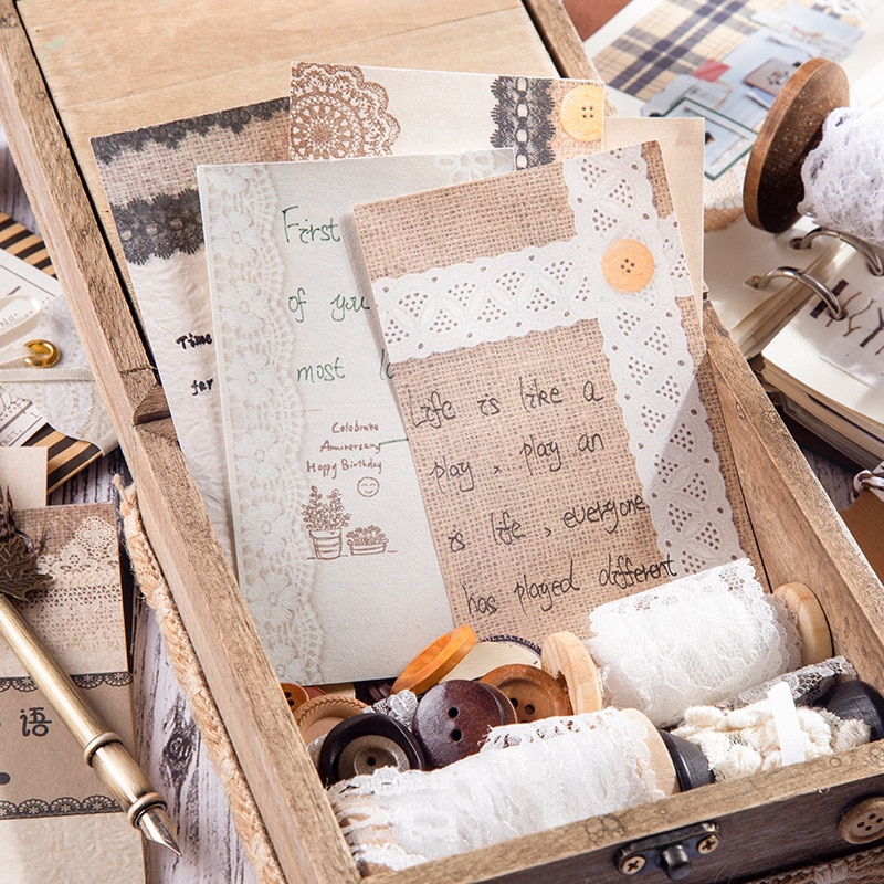 Be the first to review “30 pcs/set Lace Weaving Workshop Series Memo Pad Diary Stationary Flakes Scrapbook Decorative Retro material Message paper”