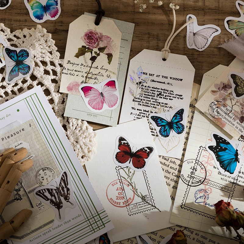 46 pcs/box Butterfly collection Decorative Mimi Stickers Scrapbooking Label Diary Stationery Album Phone Retro Journal Planner